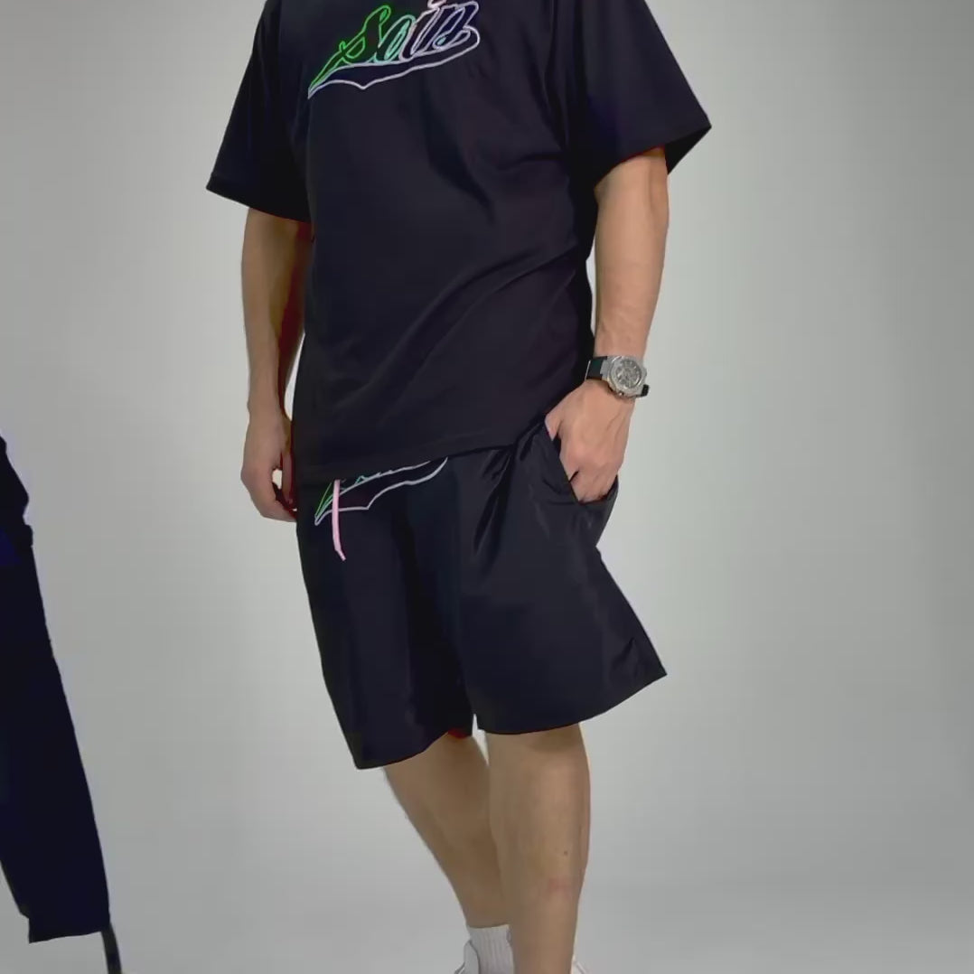 Corto negra con bordado vibrante de letras en colores, simulando un diseño dulce y atractivo. Un toque divertido y moderno que aporta carácter y estilo a cualquier look.