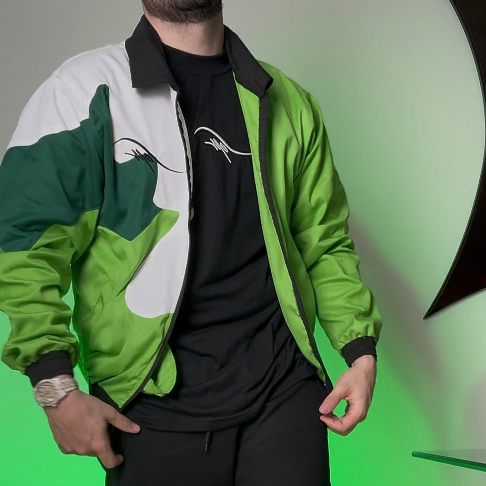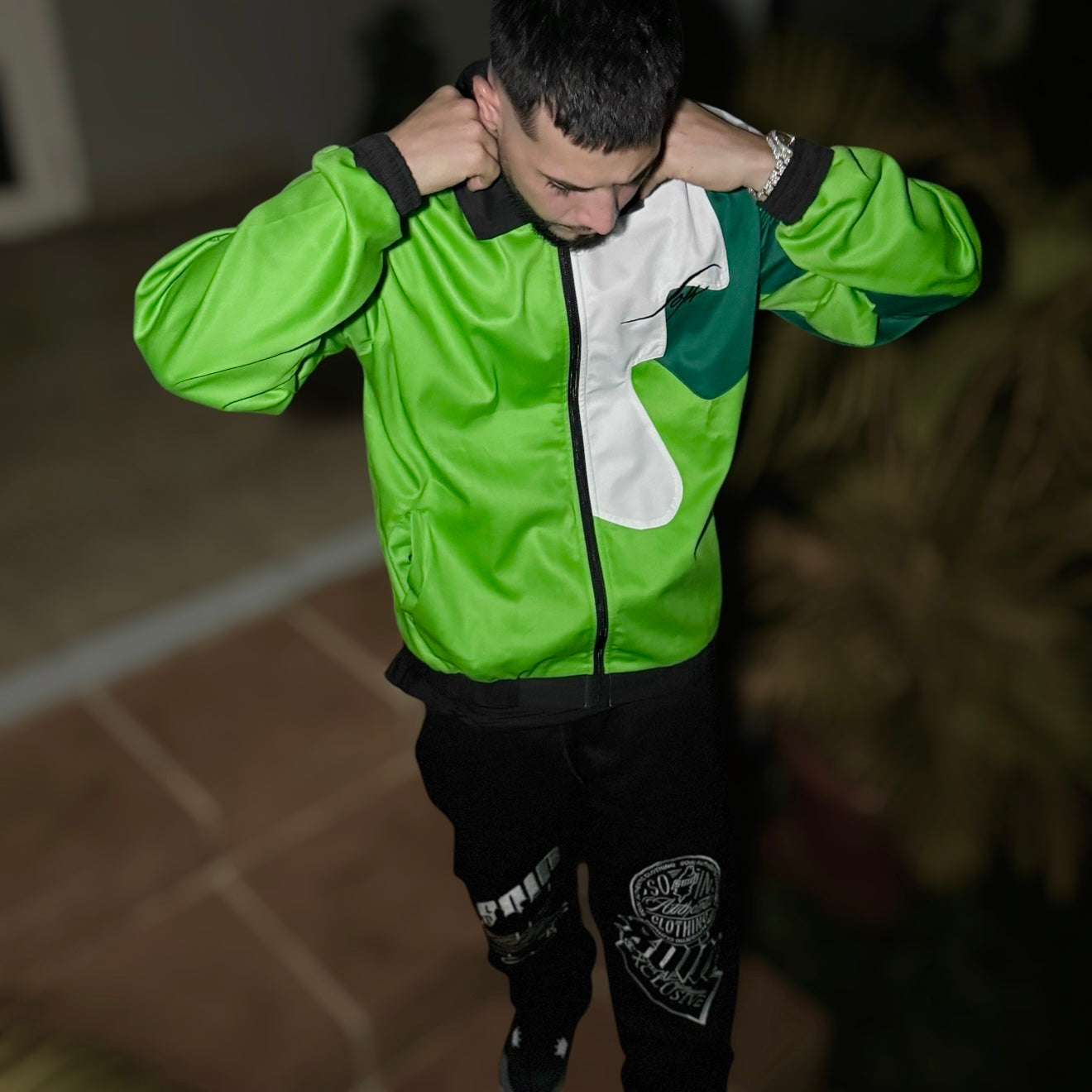 Una chaqueta extravagante con un patrón orgánico en forma de gotas que crean un diseño único y llamativo. Cada detalle es meticulosamente elaborado para destacar, ofreciendo un estilo vanguardista y exclusivo que es perfecto para sobresalir en cualquier entorno urbano.